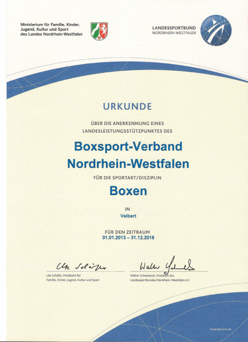 Der Nordrhein-Westfälische Boxsportverband befürwortete die Entscheidung „pro Velbert“ ebenfalls, wie dessen Präsident Erich Dreke in seiner Rede unterstrich. Dreke weiß, dass Velbert erfolgreich ist, hervorragende Nachwuchsarbeit leistet und den Rückhalt der Stadt genießt. Den Stützpunkt-Trainern Peter Eichhorn und Michael Vogel wünschte er viel Erfolg bei ihrer neuen Herausforderung.
