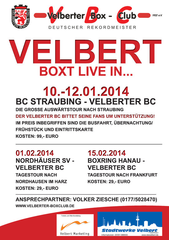 Der Vorverkauf für alle Veranstaltungen des VBC in der Box-Bundesliga hat begonnen. Informationen zu den Auswärtsfahrten finden Sie hier.
